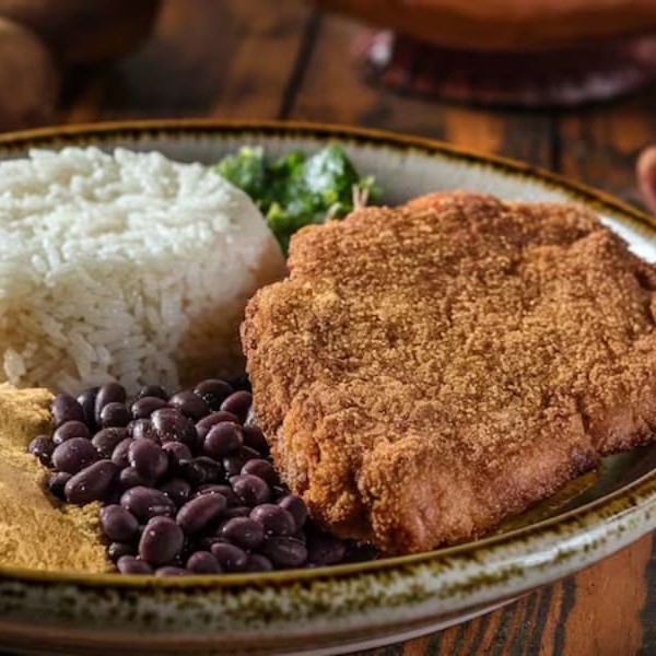 Carne macia e suculenta feita a milanesa, servida com arroz soltinho, feijão cremoso e temperado, e acompanhamentos à sua escolha. (Serve Bem 1 Pessoa)