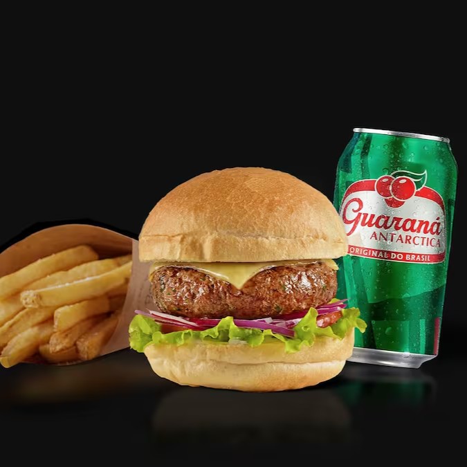 Combo: Suculento Hamburguer de Kafta 150g, queijo prato derretido, pão crocante, alface, tomate, cebola roxa . Inclui uma porção de batata frita e uma lata de refrigerante. Combo individual com entrega super rápida. Peça já e descubra por que é o mais pedido!