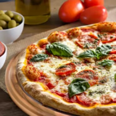 Molho de tomate, Mussarela, Bacon, Tomate, Catupiri e Orégano.