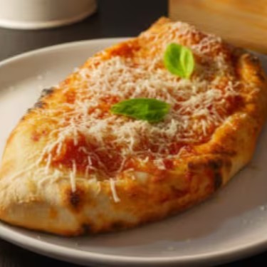 Delicioso Calzone contendo como ingredientes, Molho de Tomate, Mussarela, Calabresa, Frango, Milho, Palmito,Catupiri e Orégano.