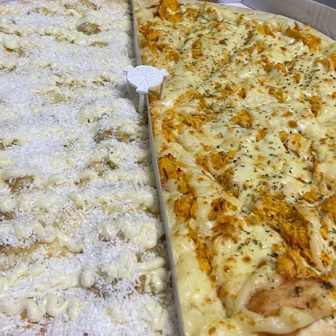 Pizza gigante de 3 sabores tradicionais +pizza broto doce + refrigerante 2 litros.
