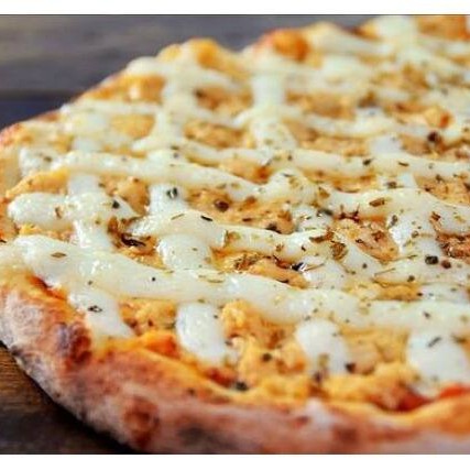 Molho de tomate, mussarela, frango, cheddar e orégano
