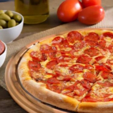 Molho de tomate, mussarela, pepperoni, parmesão e orégano