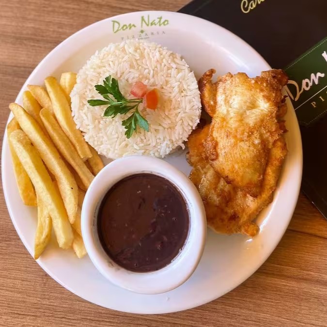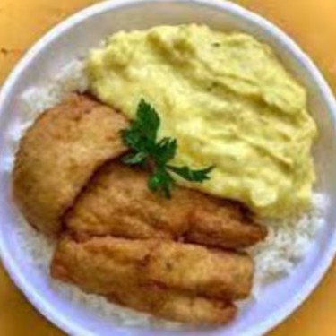 Arroz, Feijão, Purê de Batatas e Peixe Frito (tilápia).