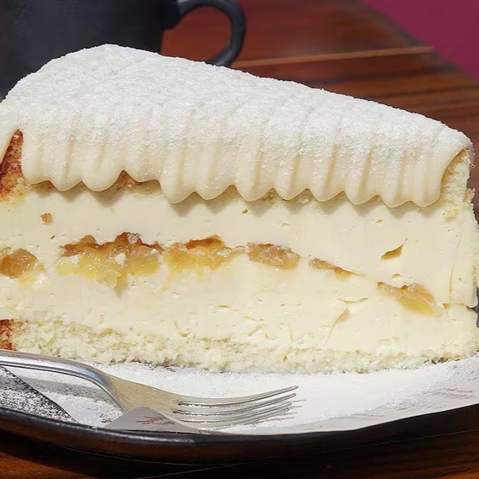 Generosa fatia de massa fofinha e molhadinha com um delicioso recheio de abacaxi cozido com canela em pau, além do dabor único de Leite Ninho.