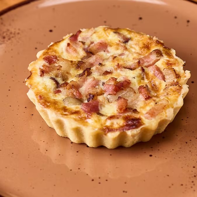 Deliciosa quiche com um incrível recheio de mussarela e bacon.