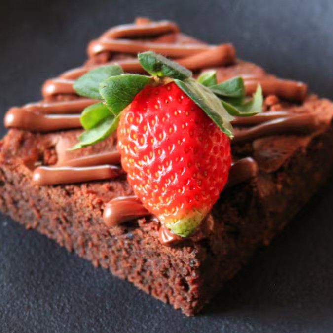 Brownie Com Pedaços De Chocolate - Com Morango E Nutella