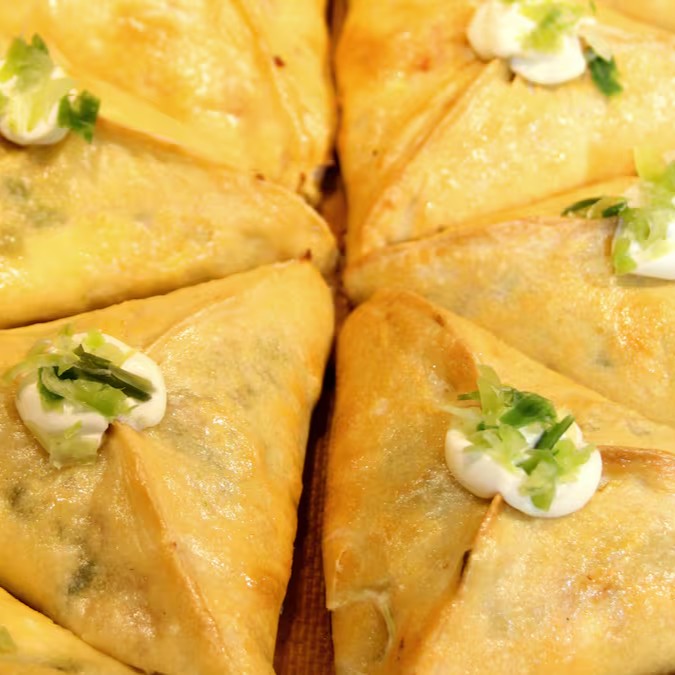 Massa fininha e um incrível recheio de alho-poró, peito de peru e cream cheese.