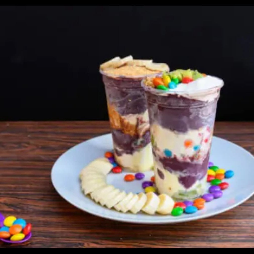 *****foto ilustrativa ***** dois copos de 400ml com complementos de leite condensado leite em pó e banana