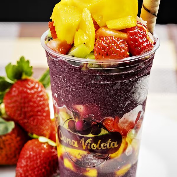 Aproveite essa oferta irresistível! São 2 copos Gigantes de 500 ml iguais de Açaí tradicional acompanhados de Morango, Leite em pó e Leite Condensado Ou Banana, Leite em Pó e Leite Condensado.
