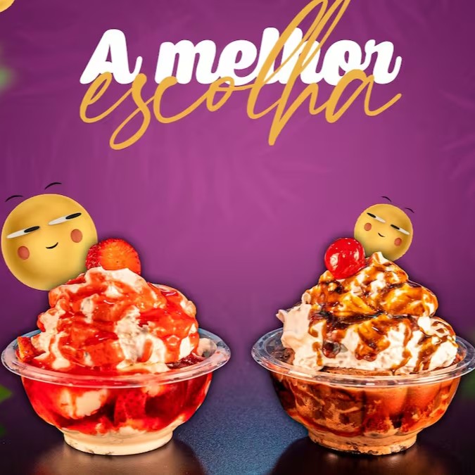 Saboroso e cremoso, delicioso sorvete a base de leite com calda e pedaços de chocolate conforme o sabor escolhido.
