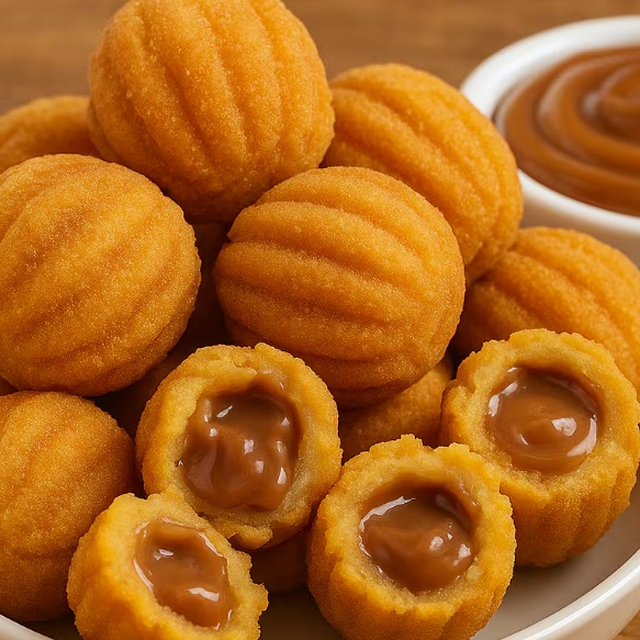•Deliciosos churros,sempre fresquinhos,crocantes e fritos na hora. •Recheados com doce de leite e polvilhados com açúcar e canela. Aproximadamente 20 Gramas cada.