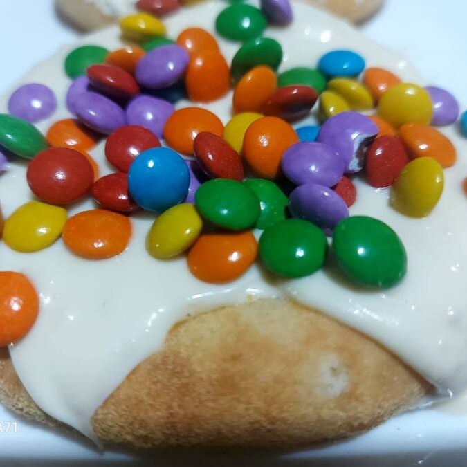 Massa de esfiha com fubá, chocolate branco e Confete