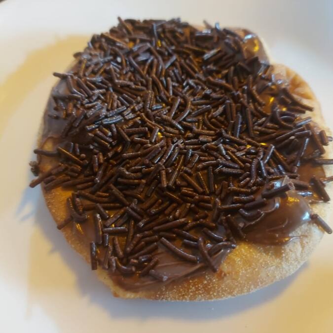 Massa de esfiha com fubá, chocolate preto ao leite e granulado
