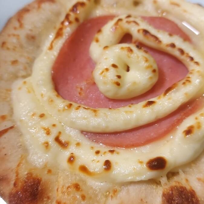 A deliciosa 'Esfiha Havaiana' é uma requintada opção na categoria de 'Esfihas Salgadas'. Com uma macia e saborosa massa enriquecida com fubá, proporciona uma experiência única ao paladar. A generosa camada de mussarela derretida harmoniza perfeitamente com o suculento lombo fatiado, trazendo um toque de sofisticação ao prato. Para completar, os cubos de abacaxi frescos adicionam um toque tropical, equilibrando a riqueza dos demais ingredientes com sua doçura e acidez. Uma aventura culinária que promete despertar todos os seus sentidos!