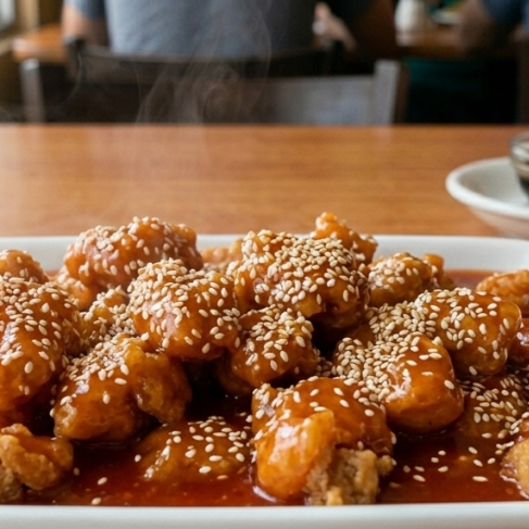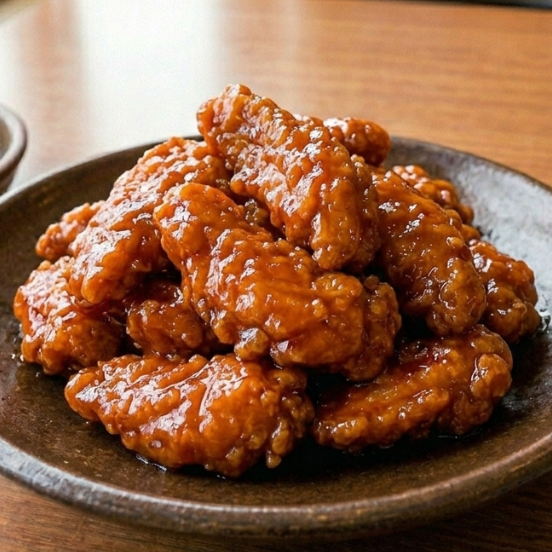 Tiras crocantes de peito de frango, cobertas com um molho que apresenta o equilíbrio ideal entre doce, salgado e um toque sutil de especiarias.