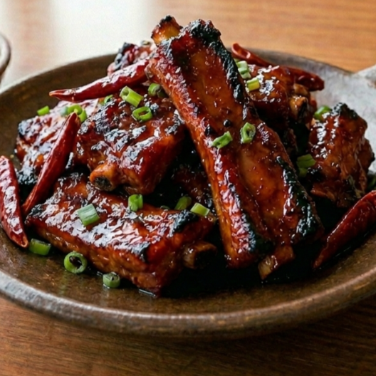 Costelas de porco suculentas marinadas em uma mistura artesanal de molho hoisin, mel e especiarias.