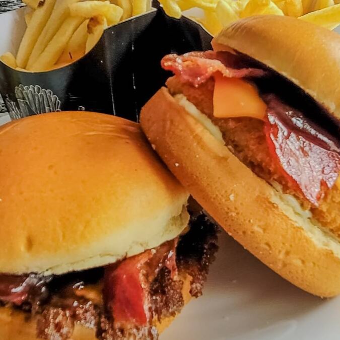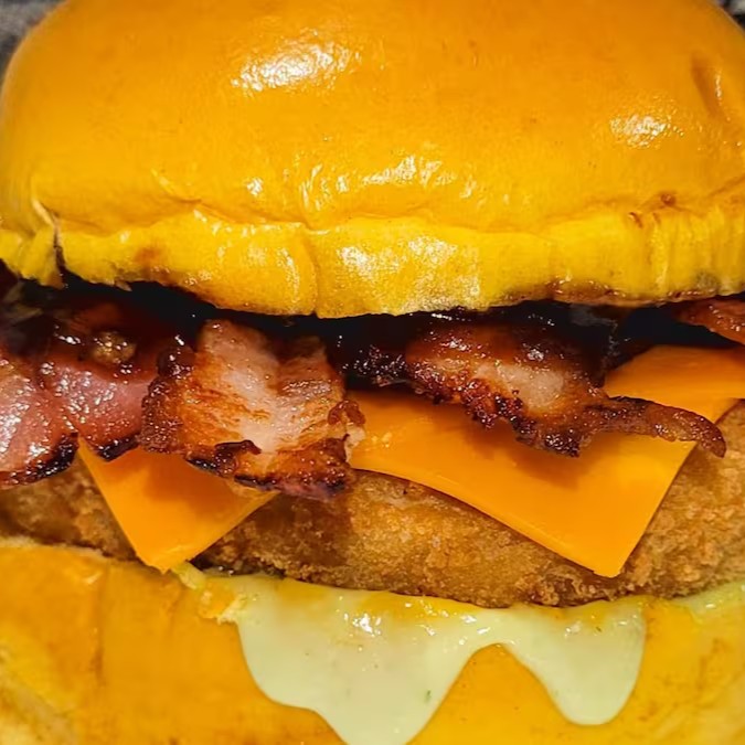 Um hambúrguer que conquista a cada mordida! Pão brioche macio, maionese especial da casa, hambúrguer de frango suculento, duas fatias generosas de cheddar derretido, um toque irresistível de barbecue e bacon crocante para completar essa explosão de sabor