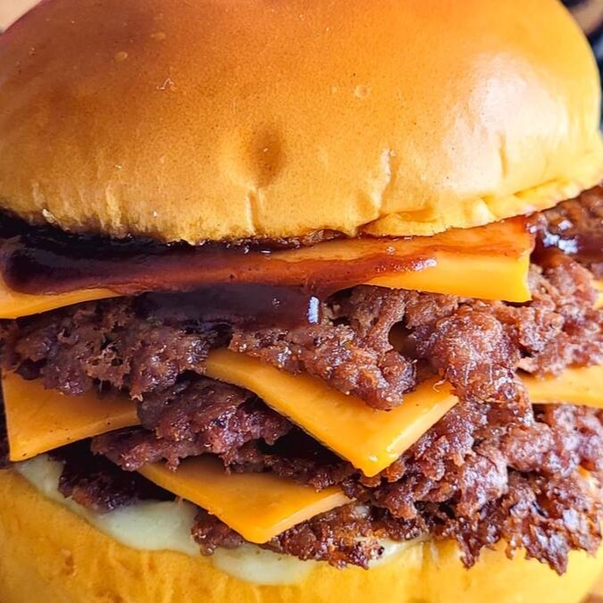 Prepare-se para uma explosão de sabor com nosso pão brioche macio, recheado com 4 hambúrgueres artesanais de 40g cada, 4 fatias de queijo cheddar derretido, maionese cremosa e um toque irresistível de molho barbecue. Uma experiência deliciosa para os amantes de hambúrguer!