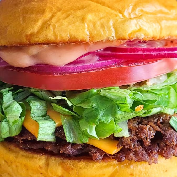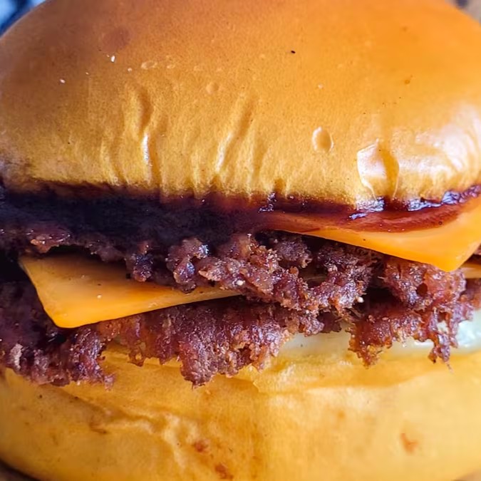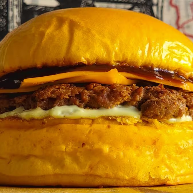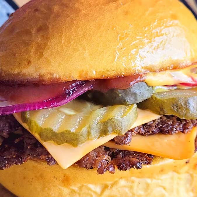 Sinta a harmonia do pão brioche leve envolvendo dois suculentos hambúrgueres, queijo cheddar derretido, ketchup, mostarda de qualidade e um toque de pickles agridoce com cebola roxa.