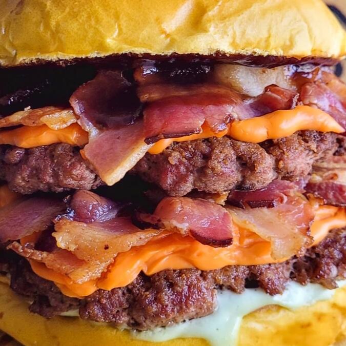 Deixe-se levar pelo sabor com nosso pão brioche macio, recheado com 4 hambúrgueres artesanais de 40g cada, 4 fatias de queijo cheddar derretido e o dobro de bacon crocante em fatias. Finalizado com maionese cremosa e um toque de molho barbecue, este lanche é uma explosão de sabores que vai satisfazer até os maiores apetites!