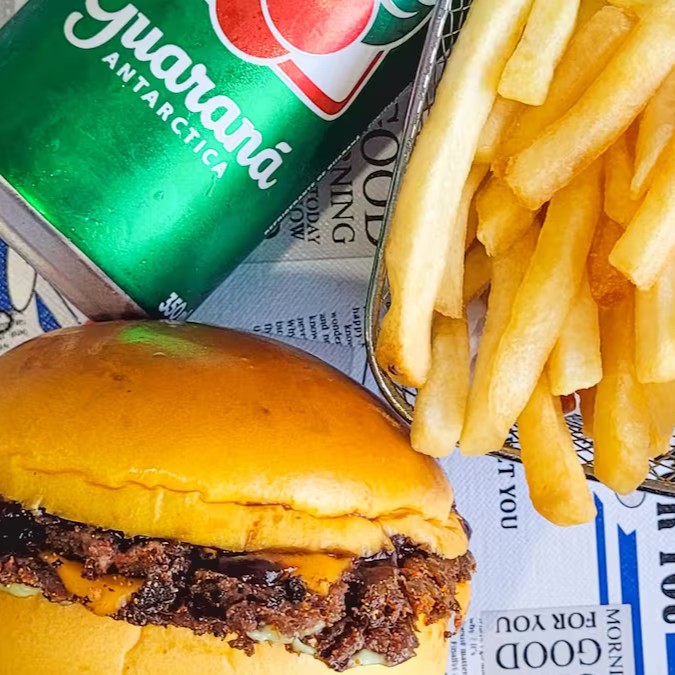 Delicie-se com pão brioche macio, recheado com 2 hambúrgueres artesanais de 40g cada, 2 fatias de queijo cheddar derretido, maionese cremosa e um toque de molho barbecue. Uma explosão de sabor em cada mordida!