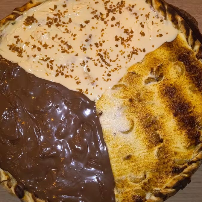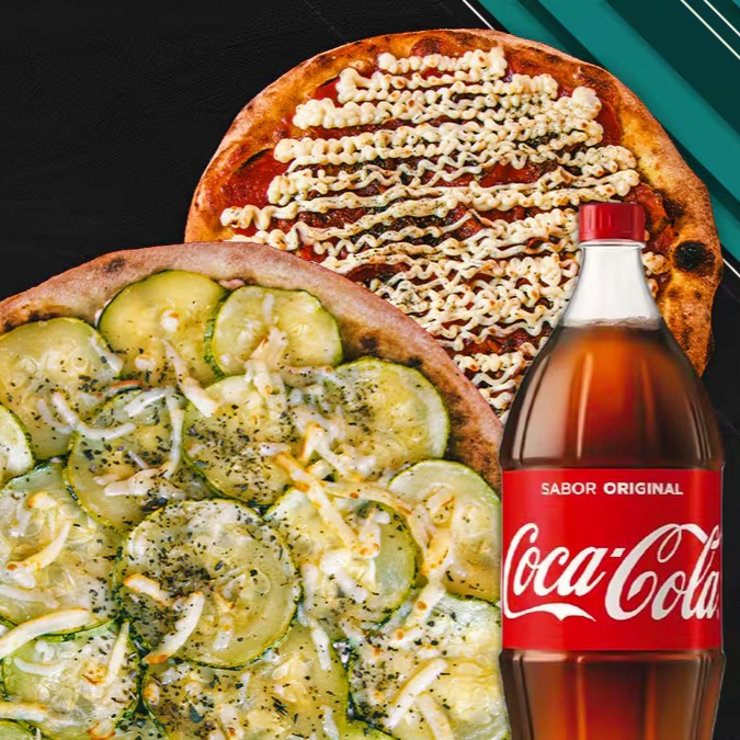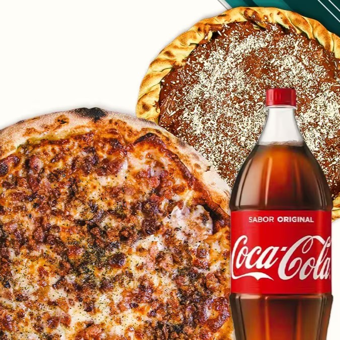 Aproveite nossa incrível promoção! São 2 pizzas grandes (35 cm de diâmetro cada), cada uma com 2 sabores distintos à sua escolha, perfeitamente preparadas para aguçar seus sentidos. Além disso, uma irresistível pizza doce de tamanho médio (30 cm de diâmetro) para finalizar sua refeição com um toque doce de satisfação. Nossas massas são preparadas com fermentação lenta, garantindo um sabor inigualável. Não perca a chance de adicionar ao seu pedido uma refrescante Coca-Cola para harmonizar com suas pizzas. É a combinação perfeita para um jantar especial ou uma reunião descontraída. Aproveite, é por tempo limitado!