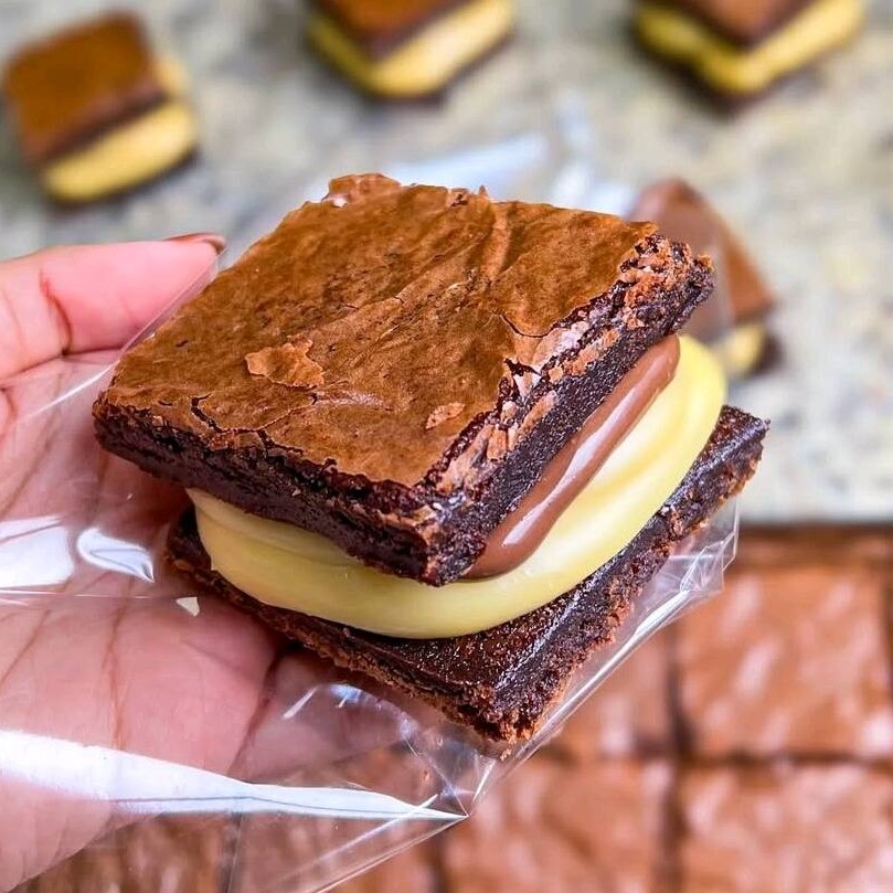 Um quadradinho irresistível de massa densa e úmida, com aquele sabor marcante de chocolate que derrete na boca. No meio, um recheio cremoso e generoso que transforma cada pedaço em uma verdadeira explosão de sabor. Perfeito para quem ama sobremesas intensas e irresistíveis!