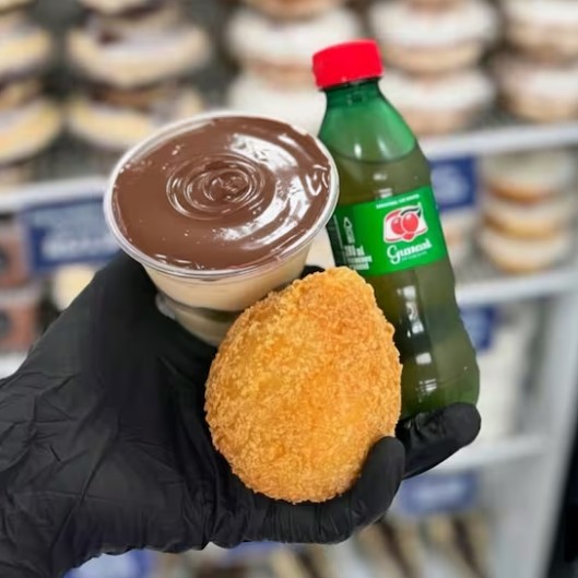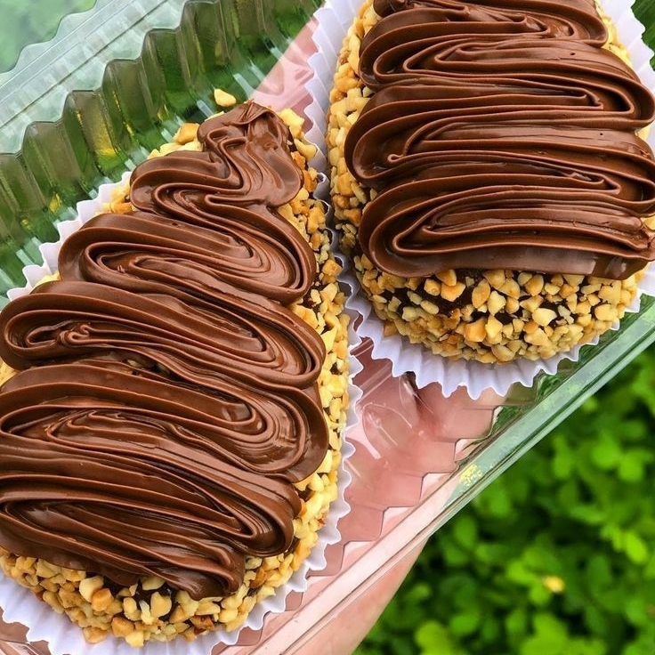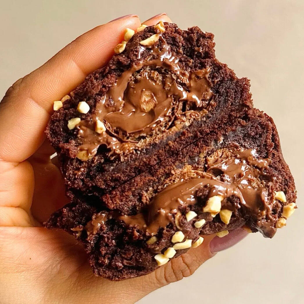 Massa macia e douradinha, com aquele sabor amanteigado irresistível, que se abre para revelar um recheio cremoso e generoso de crem de avelã. Cada mordida é uma explosão de sabor, com o contraste perfeito entre o biscoito levemente crocante e o interior derretido e intenso de chocolate com avelã. Feito na hora, pra você aproveitar sempre fresquinho!