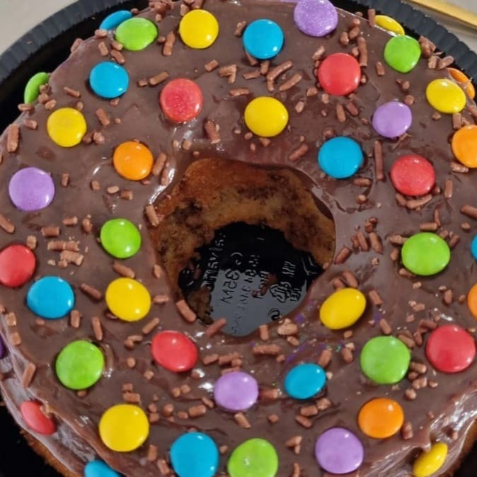 Bolo de chocolate macio e saboroso, finalizado com confetes coloridos que deixam tudo ainda mais alegre. Ideal para adoçar o Dia e agradar todas as idades Sem pré mistura ,não contem aromatizantes nem conservantes. Serve de 4 á 6 fatias.