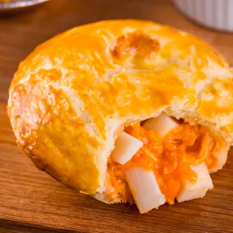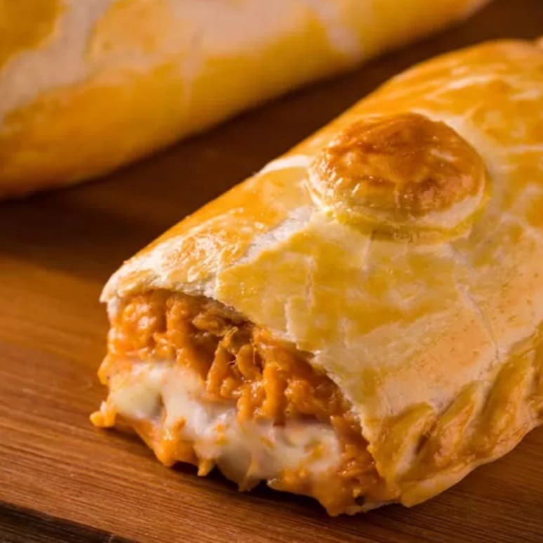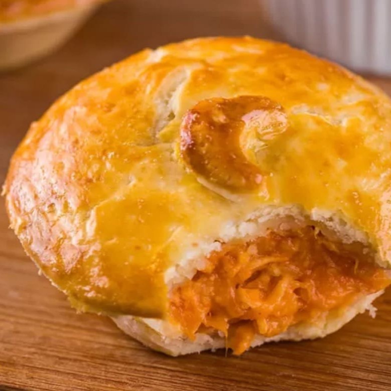 Massa macia e dourada, recheada com frango suculento e o toque cremoso do cheddar. Sabor irresistível que derrete na boca e conquista em cada mordida!