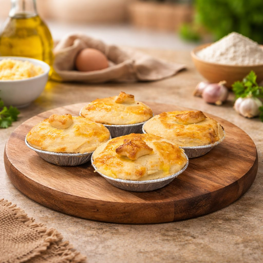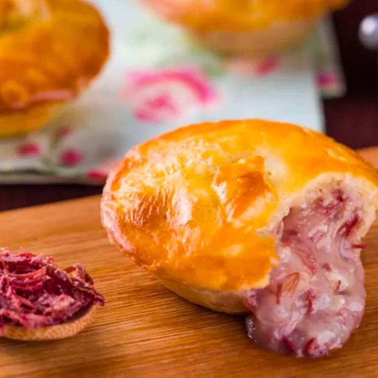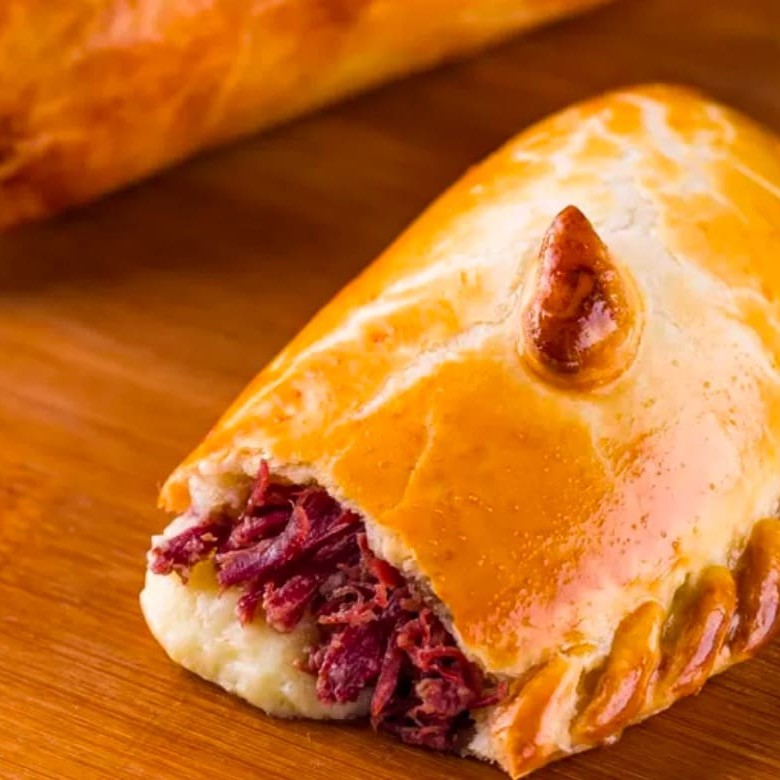 Massa macia e amanteigada, recheada com carne seca desfiada e temperada, combinada com o sabor suave da mandioca cremosa. Um toque caseiro e brasileiro que conquista em cada mordida!