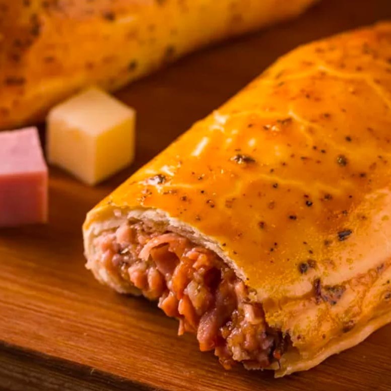 Massa crocante recheada com queijo derretido, presunto, molho de tomate temperado e orégano. O sabor clássico da pizza em uma versão prática e deliciosa!