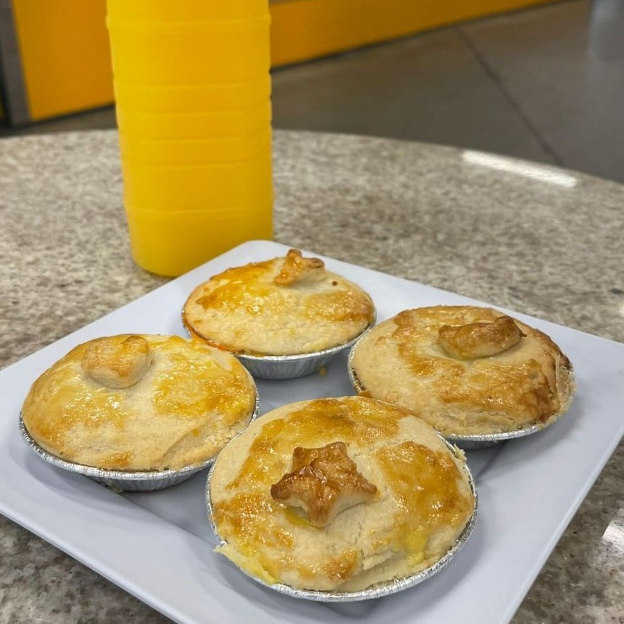 Combo ideal para compartilhar! 4 empadas artesanais com massa leve e recheios generosos, acompanhadas de 1l de suco natural fresquinho