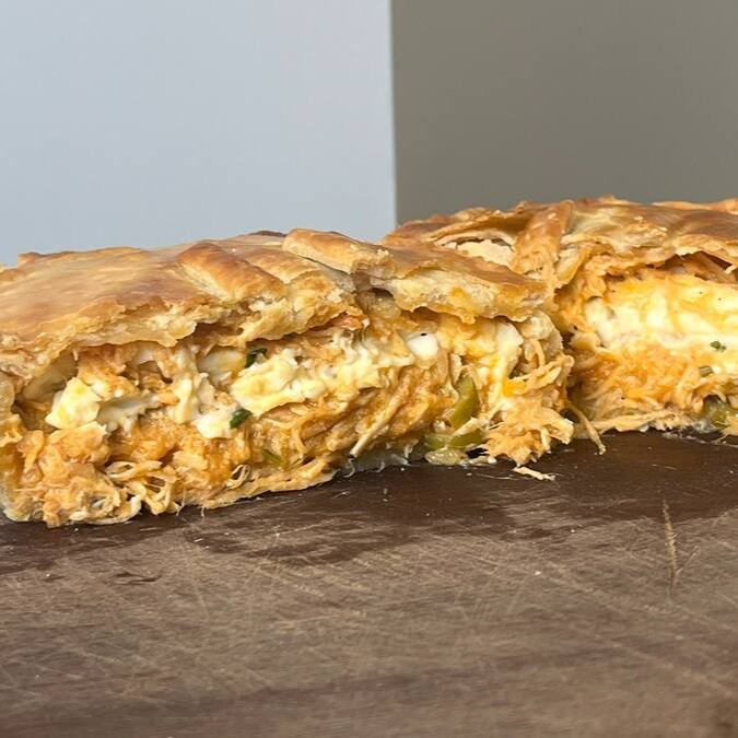 Empadão de frango cremoso com azeitona, milho e cheddar