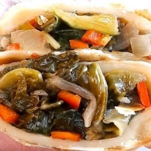 Espinafre (Espinafre, ricota artesanal Don Hugo, cebola, alho, pimentão e pimenta do reino)