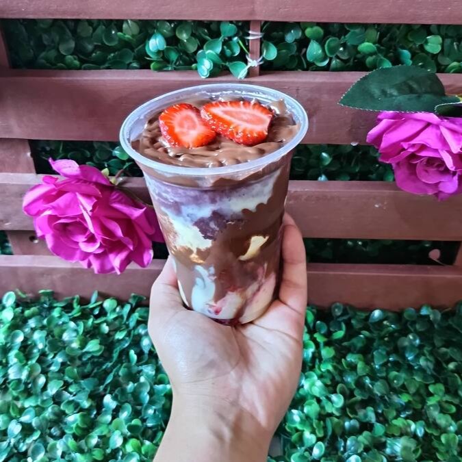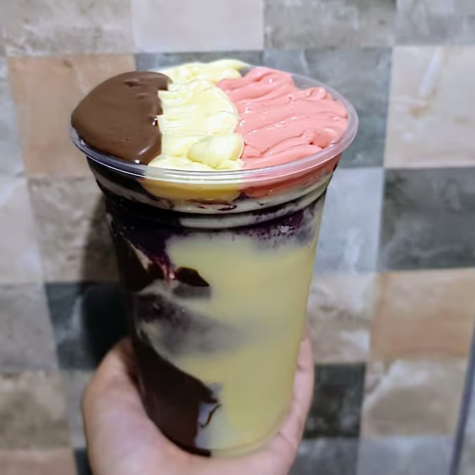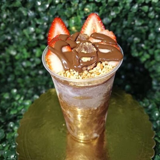 O copo de açaí napolitano é uma deliciosa combinação de sabores, ideal para quem busca uma experiência doce e cremosa. A base do copo é o açaí gelado e cremoso, que recebe camadas generosas de cremes irresistíveis. O creme de Ninho, com seu sabor suave e doce, é o primeiro a ser adicionado, seguido pelo creme de avelã, que traz uma nota de sabor aveludado e levemente torrado. Em seguida, vem o creme de morango, com seu toque frutado e delicado. Para finalizar, o leite condensado é derramado por cima, proporcionando um doce extra, enquanto o leite em pó adiciona um toque de cremosidade e sabor levemente adocicado, completando essa sobremesa decadente.