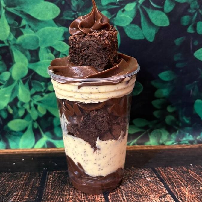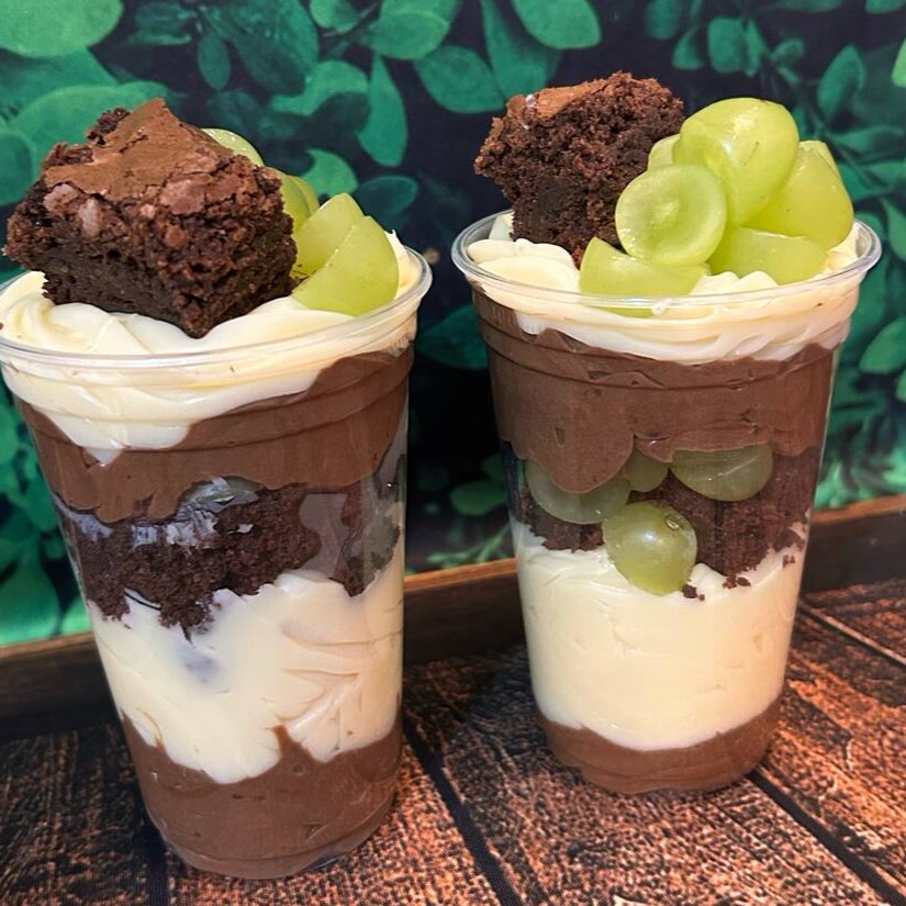 Creme de Ninho, brigadeiro de Nutella, uva e brownie.(Apenas 1 copo)