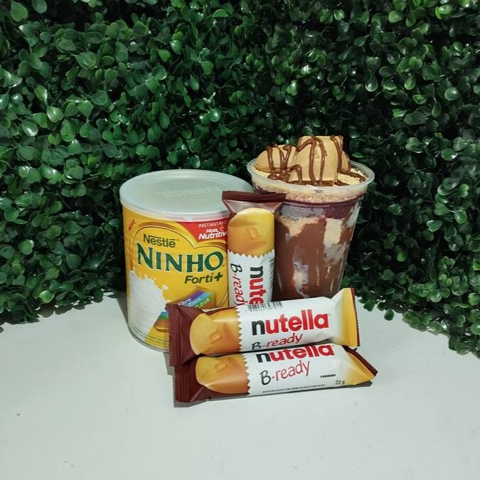 Copo de açaí com leite condensado,leite em pó, Creme de Avela e wefer Nutella