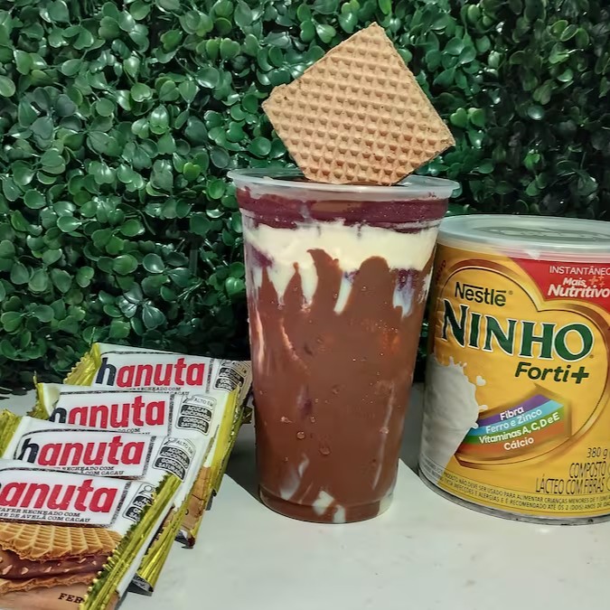Copo de açaí com leite condensado,leite em pó, Creme de Avela e Hanutta
