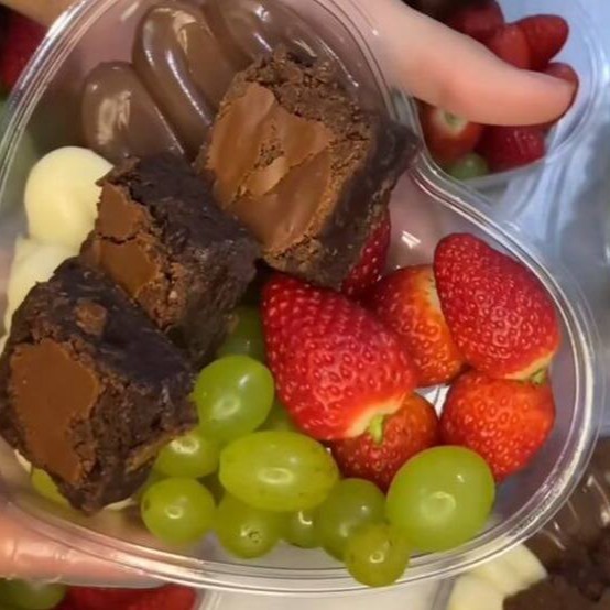 Brigadeiro de Nutella, morangos e brownie caseiro.