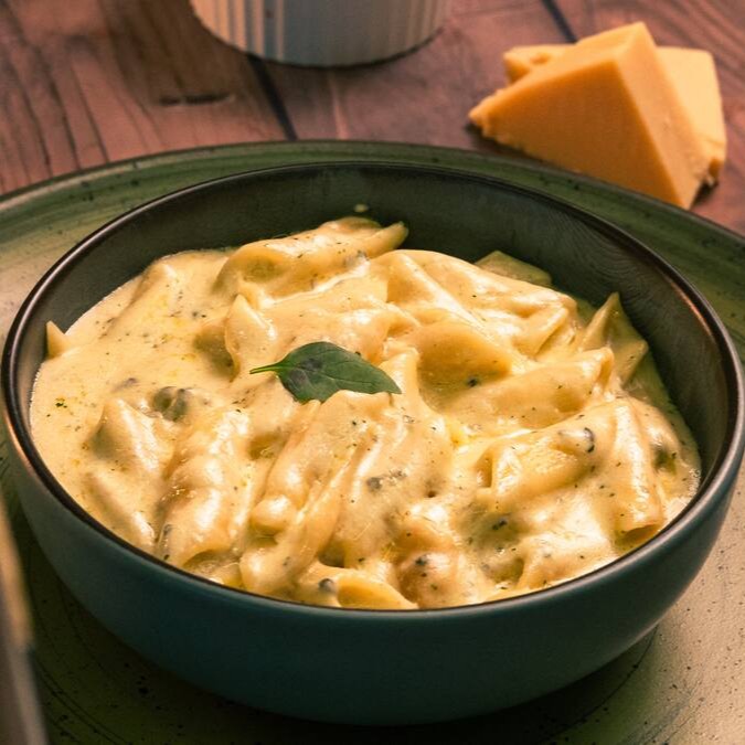 Deliciosa massa Pennoni ao molho 4 queijos.