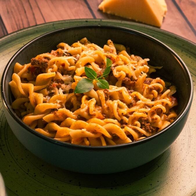 Deliciosa massa Tagliatelli ao molho bolonhesa, molho artesanal e autentico da casa.