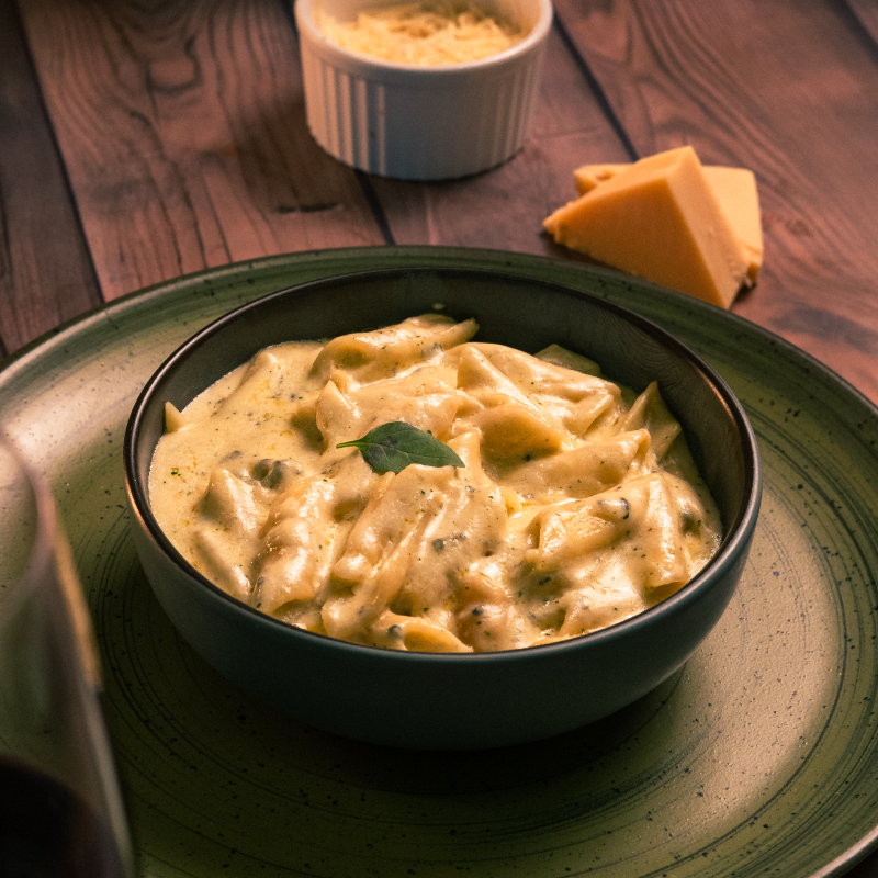 Massa Pennoni com molho de 4 queijos, (Provolone, Mussarela, Parmesão, Gorgonzola)