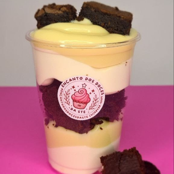 Uma explosão de sabor para os amantes de leite Ninho! Camadas cremosas de base e mousse de Ninho com pedacinhos de brownie, finalizado com brownie. Um copo de 250ml cheio de cremosidade e muito sabor!