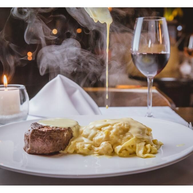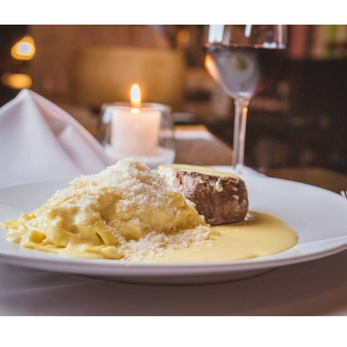 Mignon grelhado acompanhado de fettuccine artesanal ao molho de grana padano trufado