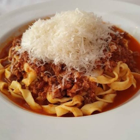 Fettuccine artesanal com ragu bolonhesa, pancetta e grana padano