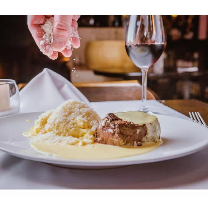Mignon grelhado com molho de trufas negras e risoto cremoso de funghi porcini com trufas brancas - serve 2 pessoas