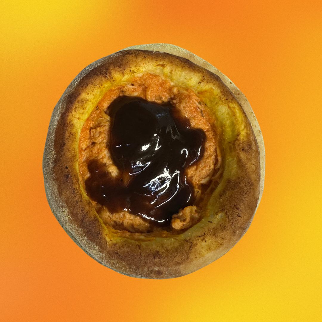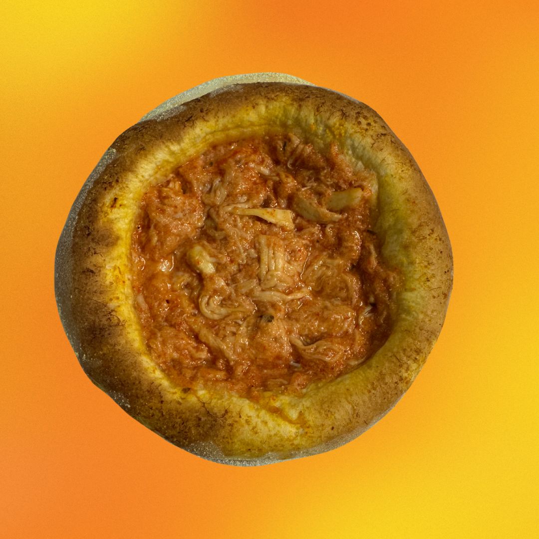 Frango desfiado com molho de tomate, colorau, caldo de galinha e barbecue (NÃO É POSSÍVEL RETIRAR OU ACRESCENTAR RECHEIO)