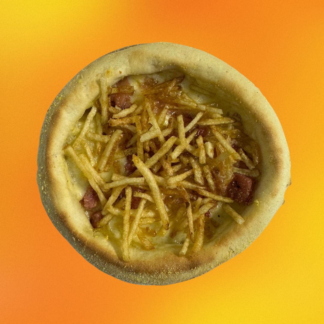 Com base de queijo mussarela, bacon em cubos e batata palha (NÃO É POSSÍVEL RETIRAR OU ACRESCENTAR RECHEIO)